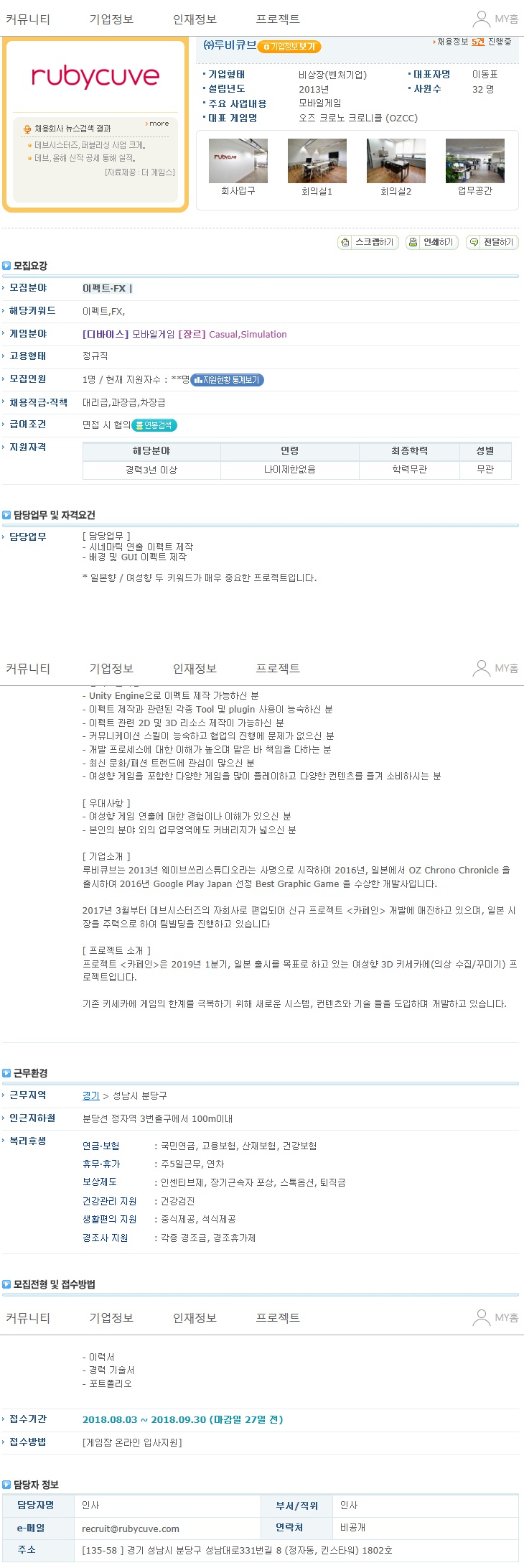 [루비큐브] 프로젝트 카페인 연출 이펙트 디자이너 경력 채용