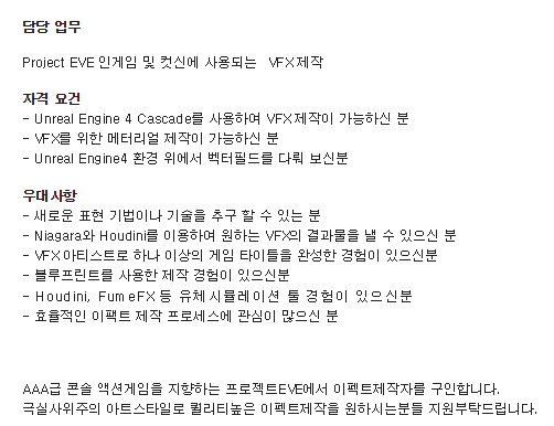 [시프트업]프로젝트 EVE - VFX 아티스트 모집