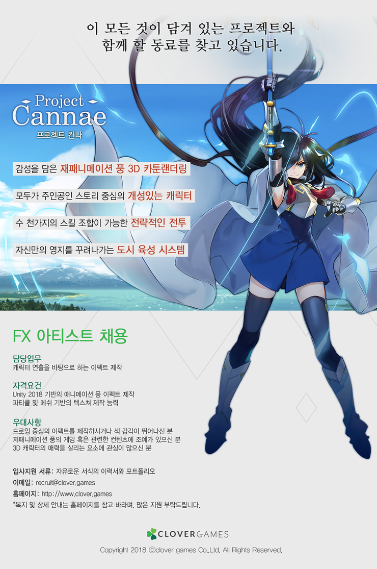 [클로버게임즈] 프로젝트 칸나에서 FX 아티스트를 모십니다