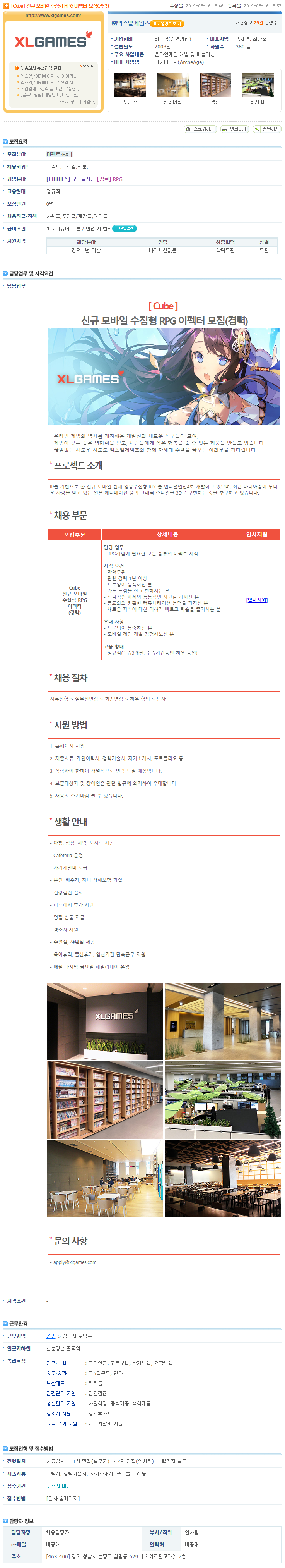 [엑스엘게임즈 - Cube] 신규 모바일 수집형 RPG 이펙터 모집(경력)