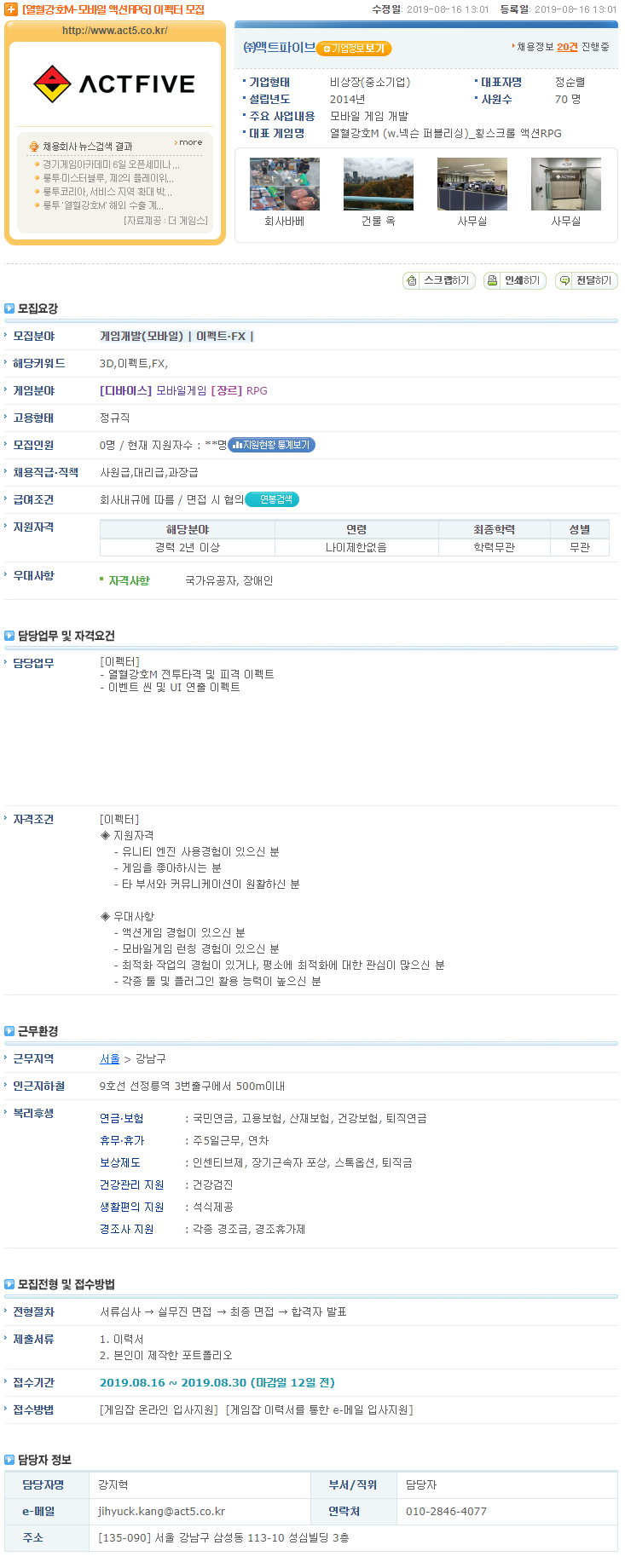 [액트파이브 열혈강호M-모바일 액션RPG] 이펙터 모집