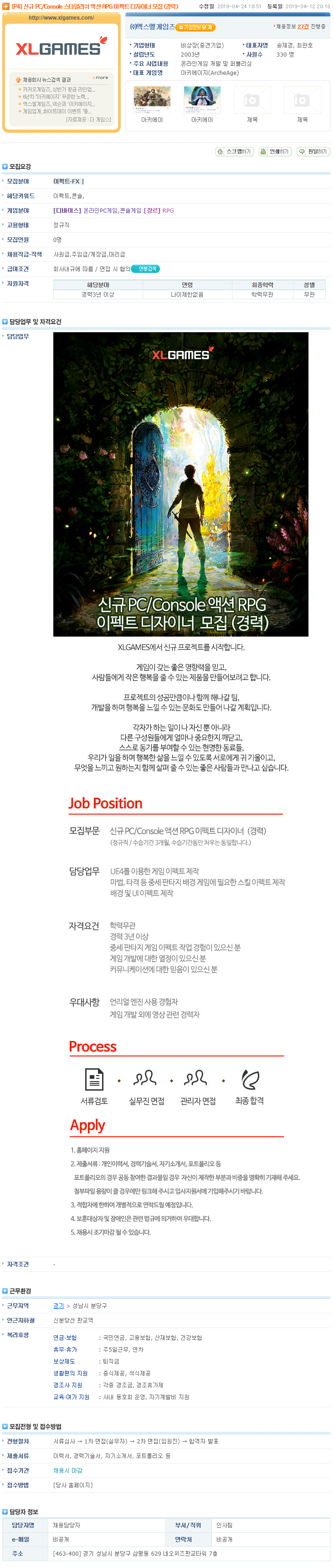[엑스엘게임즈]P4 신규 PC/Console 스타일리쉬 액션 RPG 이펙트 디자이너 모집 (경력)