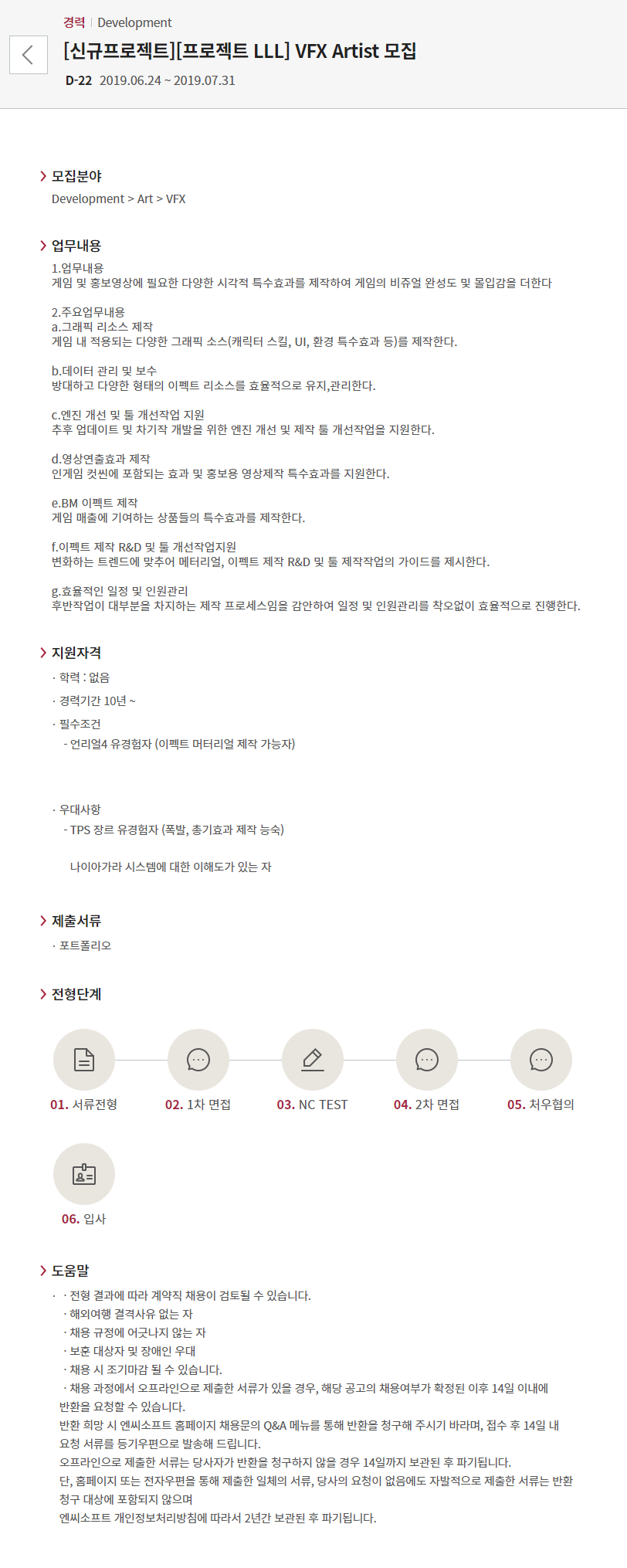 엔씨소프트 - [신규프로젝트][프로젝트 LLL] VFX Artist 모집