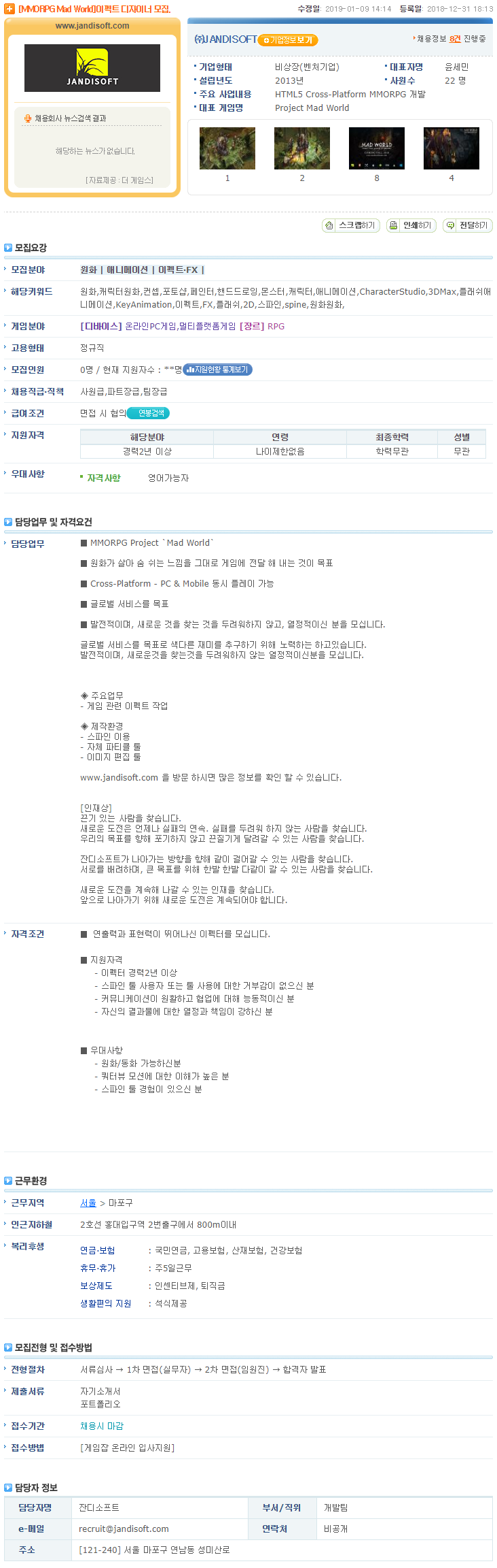 [잔디소프트 - MMORPG Mad World]이펙트 디자이너 모집