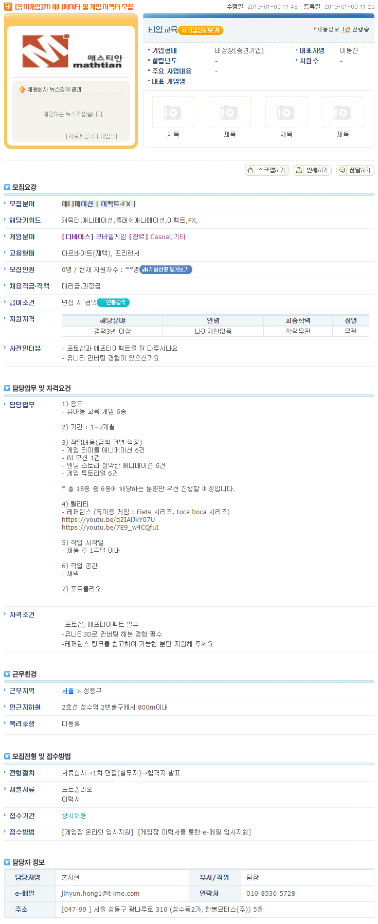 [타임교육 - 유아게임]2D 애니메이터 및 게임 이펙터 모집