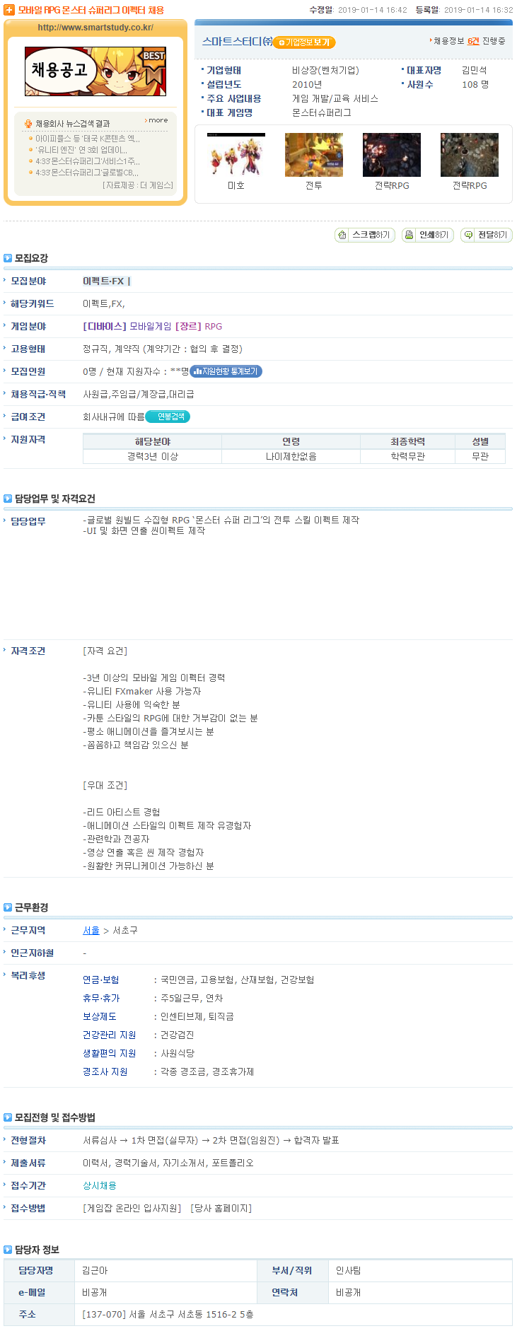 스마트스터디㈜ - 모바일 RPG 몬스터 슈퍼리그 이펙터 채용