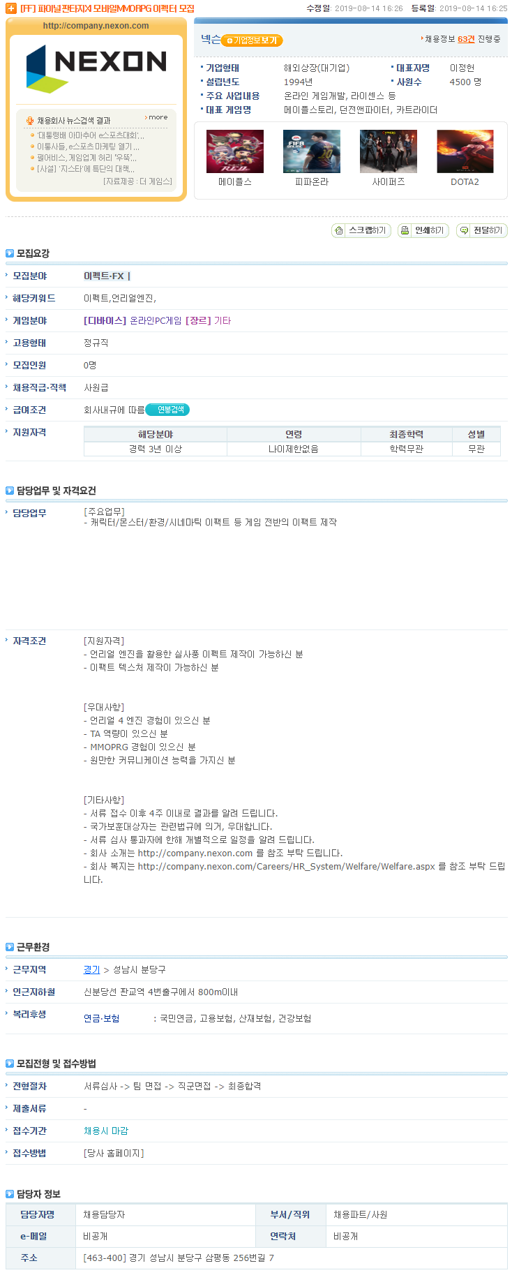 [넥슨 - FF] 파이널판타지XI 모바일MMORPG 이펙터 모집