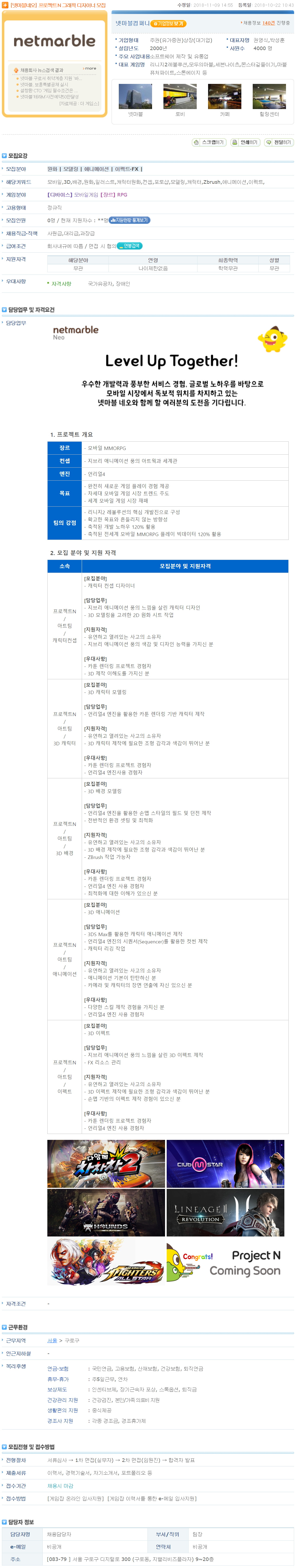 [넷마블네오] 프로젝트 N 그래픽 디자이너 모집