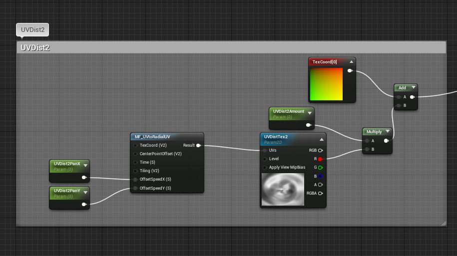 Then, as I mentioned, I have a second layer of UV distortion for less of a straight panning feel.