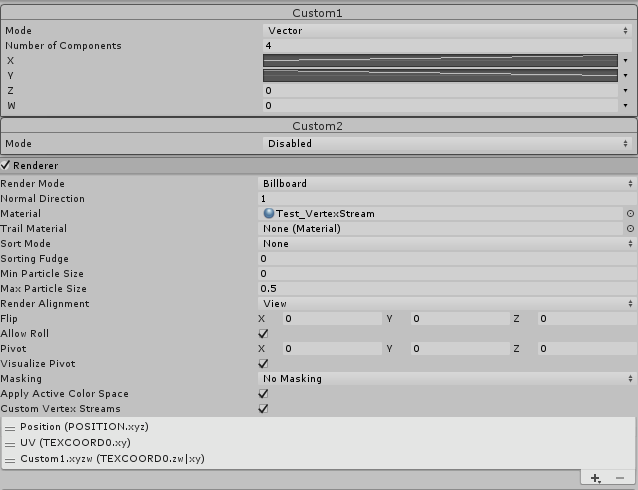 It completely ignores any values put on the custom data. But if I remove UV (TXCOORD0.xy)
