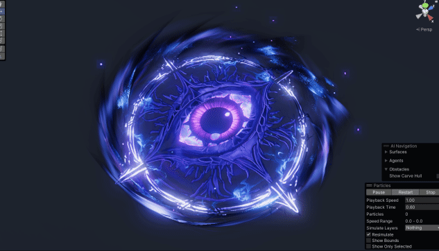 So I thought I would do a little bit of a breakdown on what I did for this one. Currently I just have one sprite and one mesh for the particle system. The mesh is just an elongated sphere to match the approximate area of the effect, and it just does the distortion of the background. The main effect is the sprite.