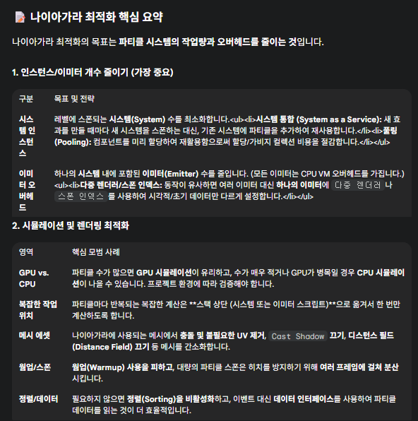 나이아가라 시스템을 구축할 때, 특히 캐스케이드(Cascade)의 패러다임에서 전환하는 경우, 시스템에 포함되는 고유한 시각적 요소나 미묘한 동작 변화를 위해 새로운 이미터를 추가하는 것이 자연스러울 수 있습니다. 그러나 모든 이미터에는 관련 오버헤드가 있으므로 이는 성능에 부정적인 영향을 미칠 수 있습니다.