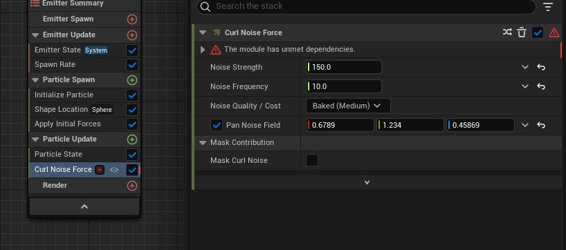 1.9 ParticleUpdate 카테고리 아래에 CurlNoiseForce를 추가합니다. 매개변수는 다음과 같습니다.