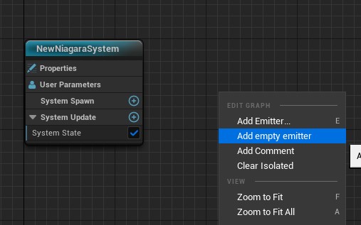 1.1 먼저 Niagara 오브젝트를 새로 만들고, Empty Emitter 빈 이미터를 추가하세요.
