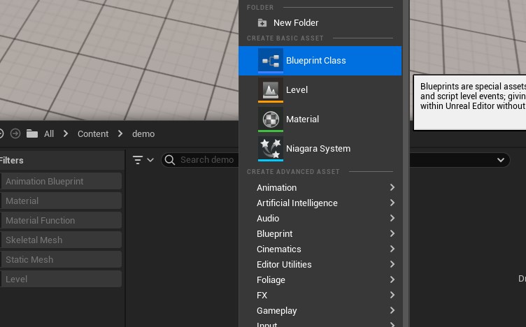 3.1 이제 블루프린트를 새로 만들어 Niagara와 스플라인을 조립할 수 있습니다.