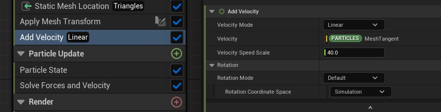 메시에 맞춰 정렬된 속도를 파티클에 부여하는 방법