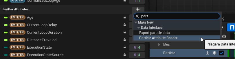 먼저, Emitter Attribute로 Particle Attribute Reader를 생성하세요.