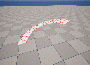 그러나 나이아가라 내부에서 완전히 제어되는 스태틱 메시를 따라 스파크나 파티클을 생성하고 싶은 경우가 많습니다—예를 들어 슬래시나 나선형과 같은 경우입니다. 그런 경우에는 파티클 위치를 수동으로 조정하여 대략 올바르게 보이도록 할 수 있지만, 슬래시 방향이나 스케일을 변경할 때마다 재조정이 필요합니다. 나선형 같은 복잡한 메시의 경우 수동 조정은 빠르게 비현실적이 됩니다.
